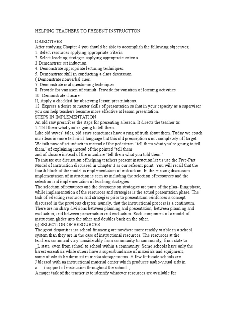 Helping Teachers To Present Instruct Ton Pdf Teachers Lesson Plan